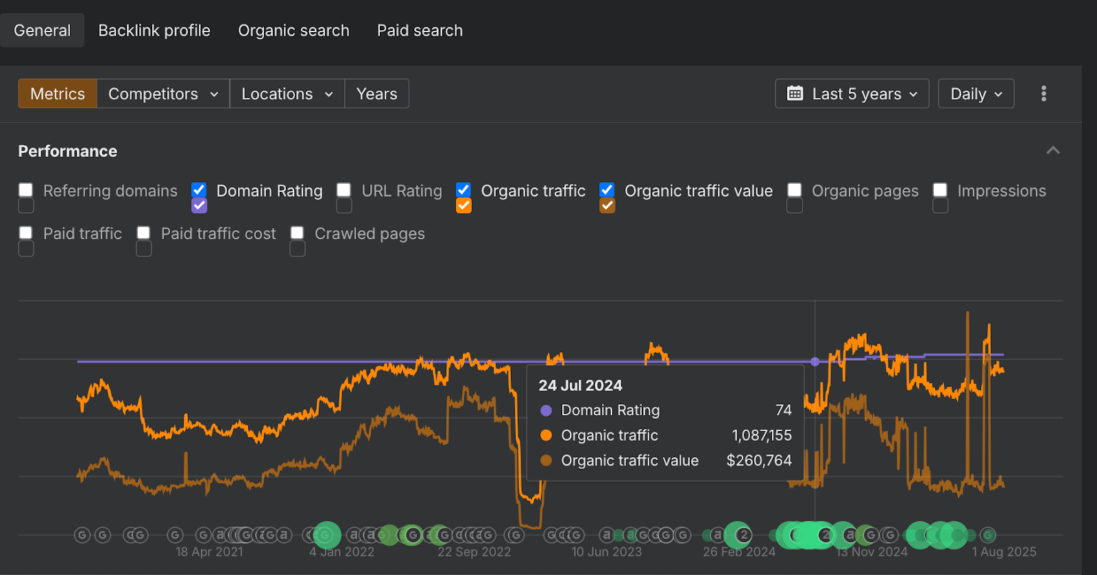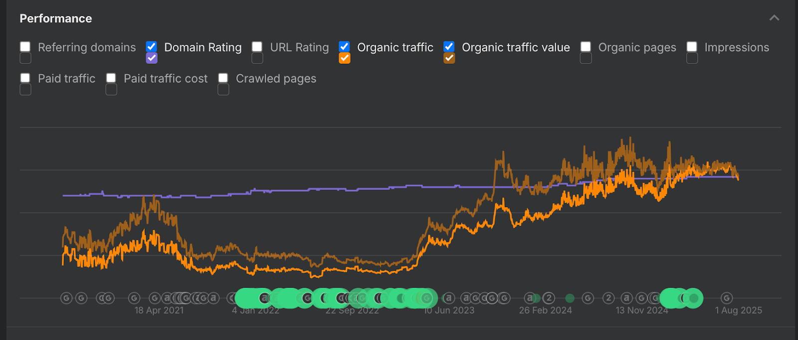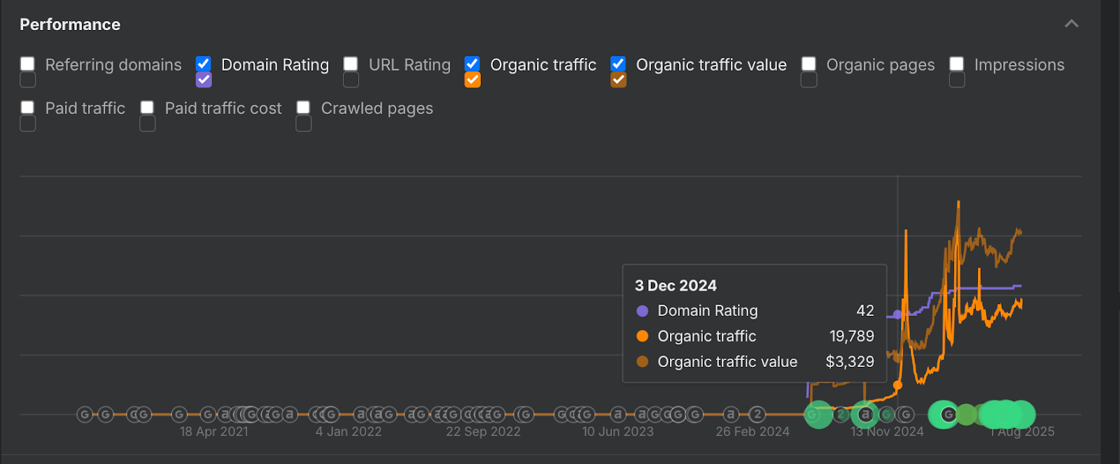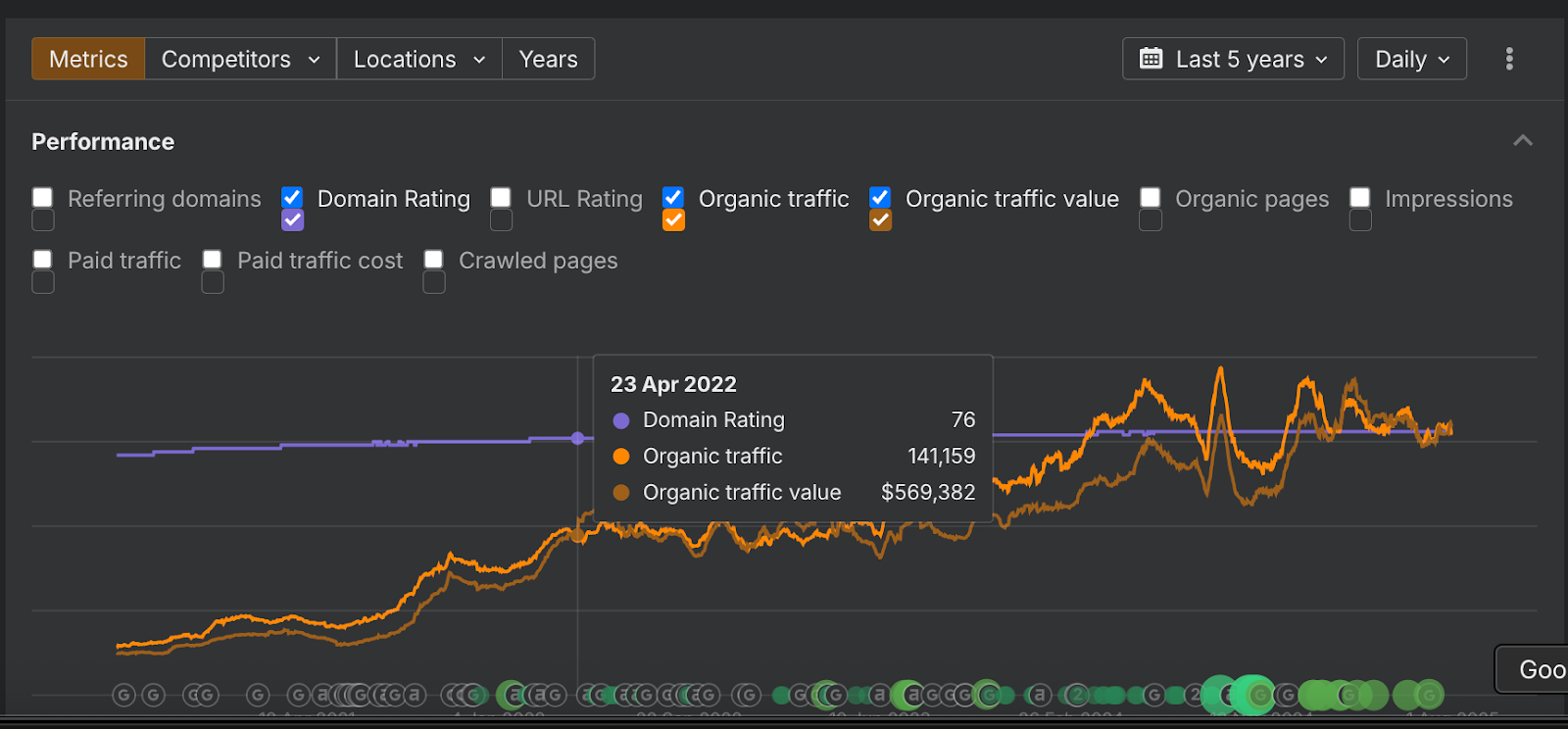 | Client | Total Links | Work Span | DR Change | Traffic Change | Traffic Value Change |