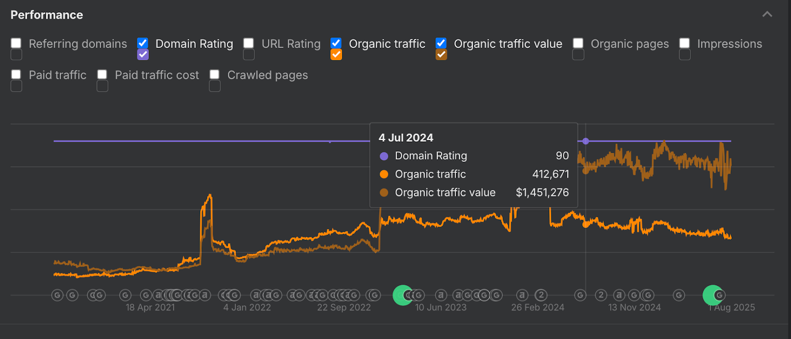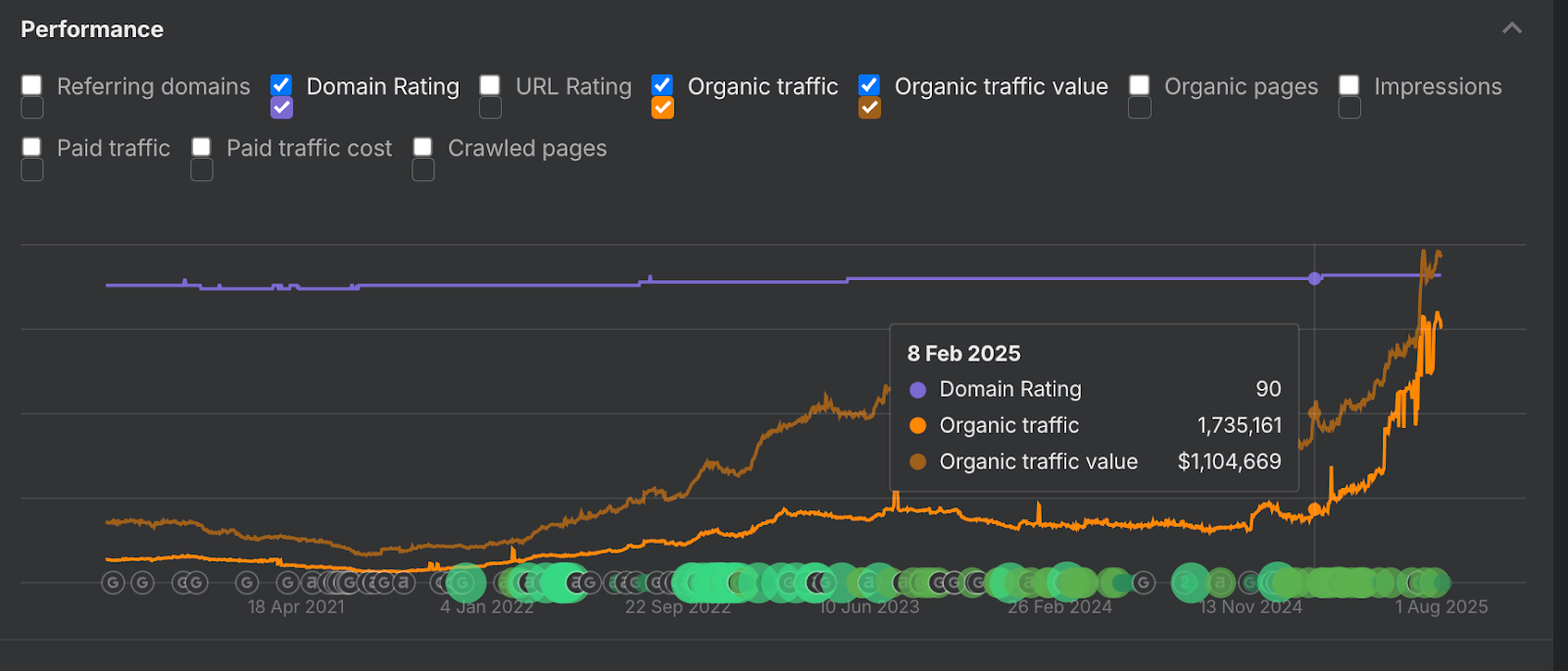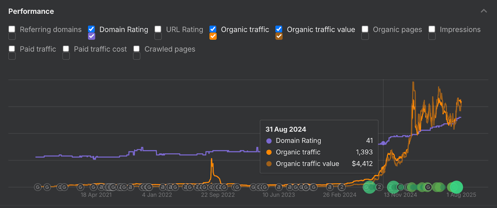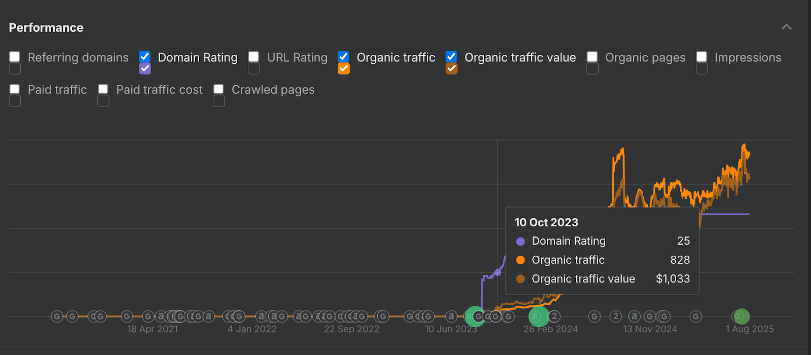 | Client | Total Links | Work Span | DR Change | Traffic Change | Traffic Value Change |
